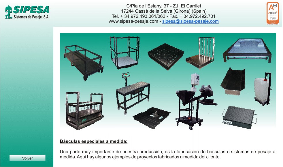 Home e-mail Volver Báscula para pesar barras Báscula con soporte para big-bag Báscula con bolas Báscula con respaldo para sacos Báscula para máquina de palets Báscula con soporte para bidones Báscula con bandela en "V" Plataforma pesa-ruedas Dosificación móvil Plataforma de resisténcia Báscula móvil con pista de rodillos Báscula para pesar ganado